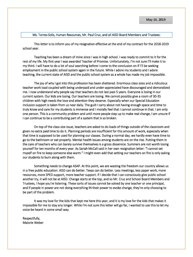 Former Teacher S Powerful Resignation Letter Goes Viral