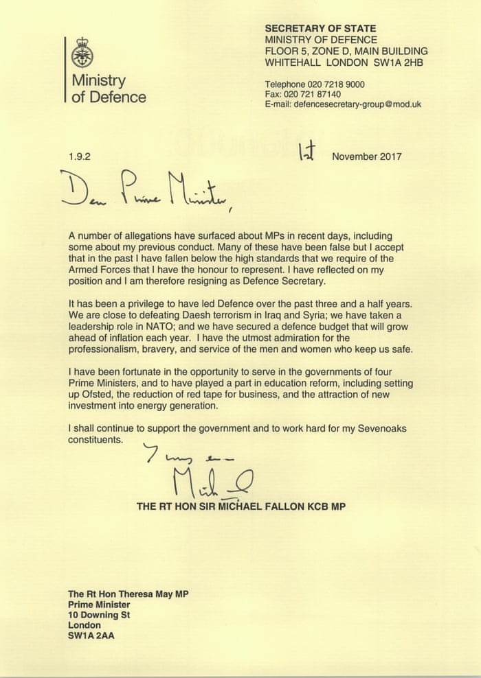 Michael Fallon Quits As Defence Secretary Saying His