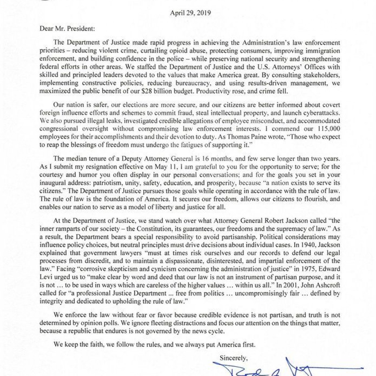 Read Rod Rosenstein S Full Resignation Letter Pbs Newshour